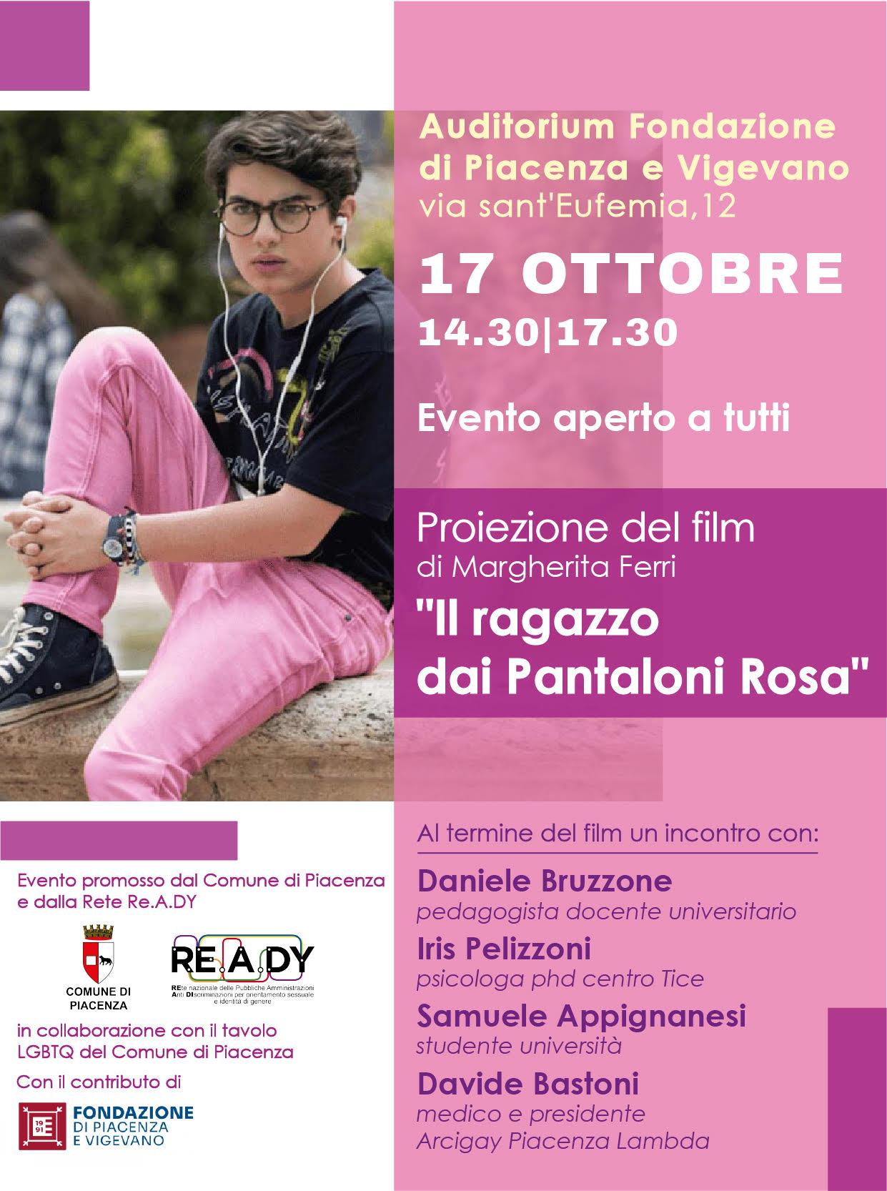 Nell'ambito dell'assemblea annuale di R.E.A.DY, rete nazionale delle pubbliche amministrazioni anti discriminazioni per orientamento sessuale e identità di genere, si tiene la proiezione del film e successivo dibattito aperto a tutta la cittadinanza.